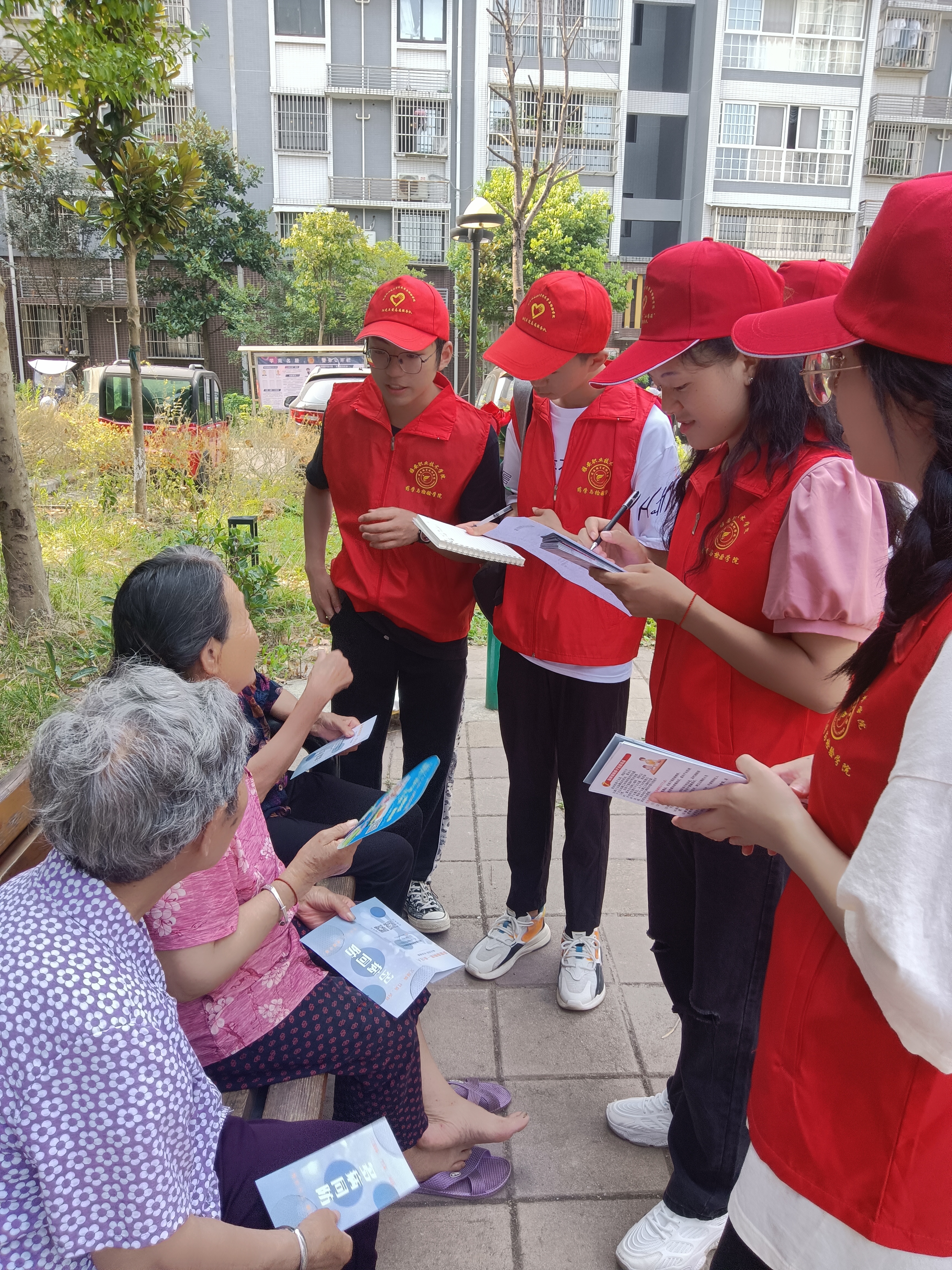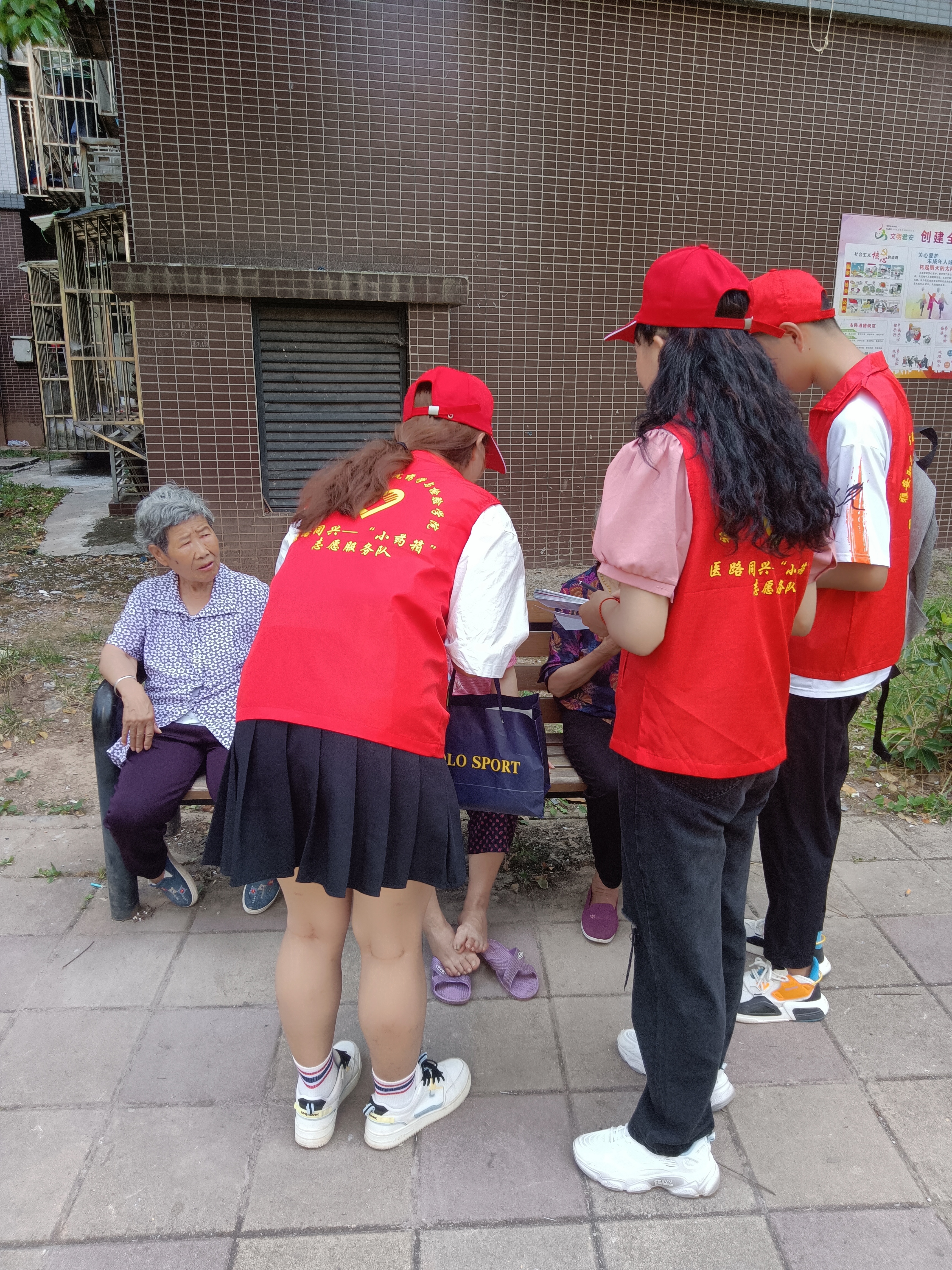 第二站到达草坝镇的香花村,在香花村志愿者们遇到了一位老爷爷患有严重的痛风,经他描述,腿脚不太麻利,每每犯病便寝食难安。还有一位老年人疑似患有白内障,谈吐间口齿也不算清晰,似乎还有轻度耳鸣,要较大声与其沟通。但志愿者们全程都耐心的与其交流,展现了雅职学子的精神风貌。