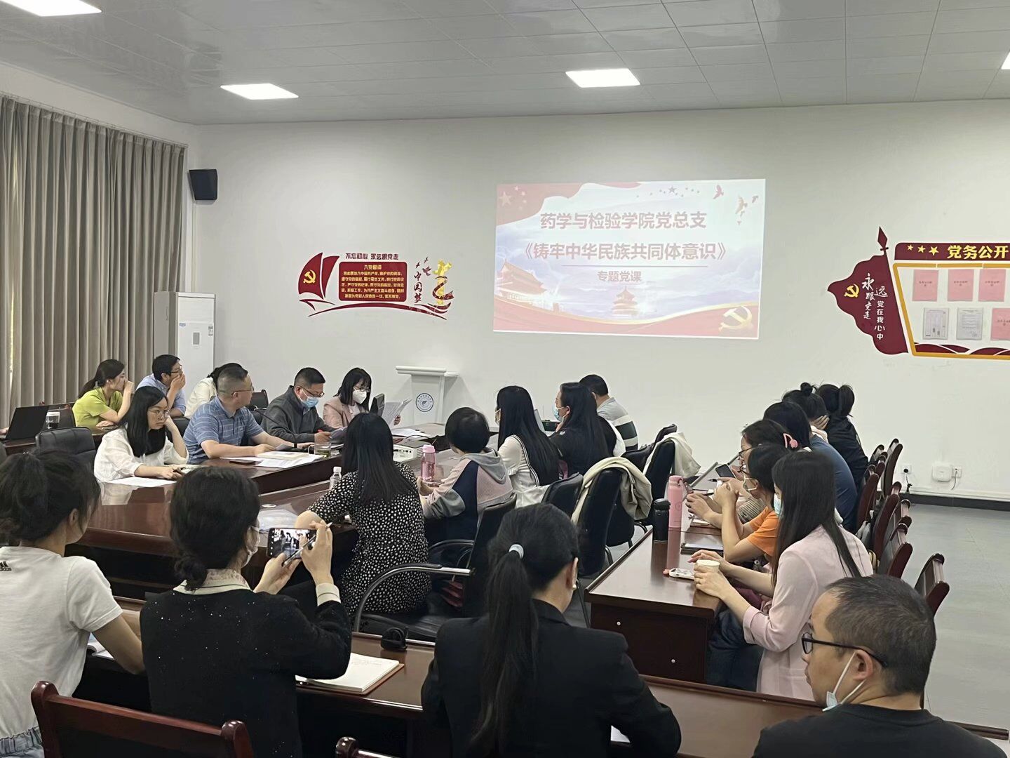 按照雅安市委为进一步巩固提升民族团结进步示范市创建工作成果,教育引导广大党员不断铸牢中华民族共同体意识,将铸牢中华民族共同体意识纳入党员教育培训体系的工作要求,药学与检验公司党总支于5月23日开展《铸牢中华民族共同体意识》专题党课。党课由党总支书记王伟才主讲,全体党员和教职工参加。