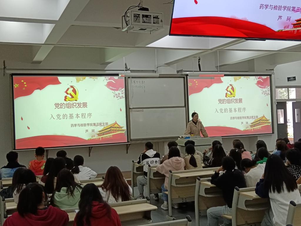 2023年10月10日下午,beat365第三党支部组织有入党意愿的2023级新生共87人,在经开校区1104教室开展员工素质拓展讲座《党的组织发展——入党的基本程序》,讲座由beat365第三党支部书记芦珂主讲,由beat365第三党支部员工党建工作站员工干部负责组织维持现场秩序。