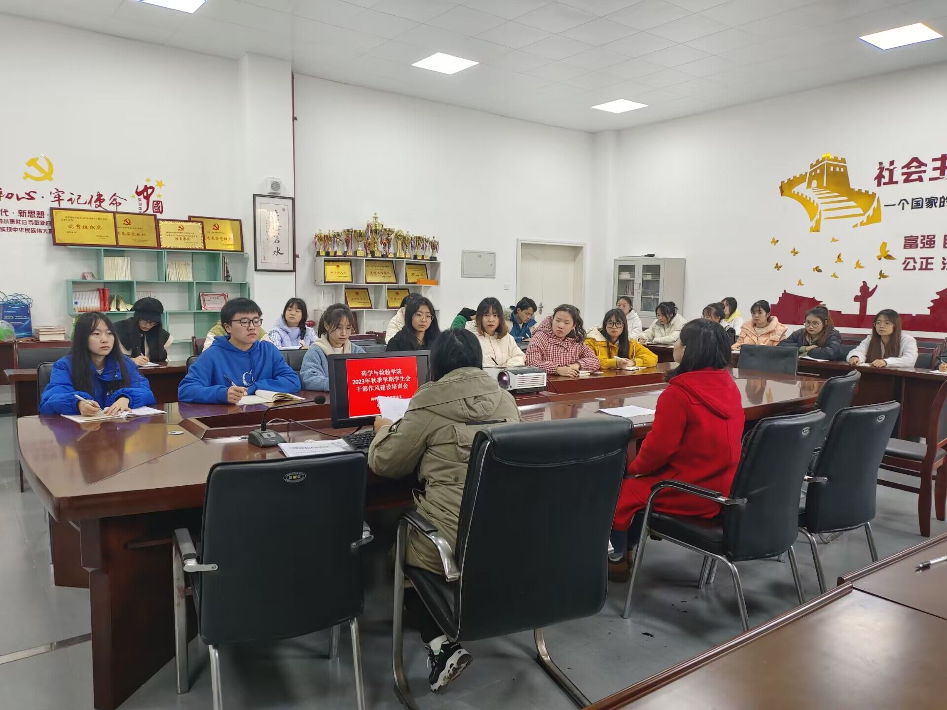 为不断强化员工会干部的全局意识与责任意识,帮助员工会更好地完成交接及各项工作,beat365于2023年12月7日在经开校区205会议室召开了由团总支书记鲜敏老师和团总支兼职副书记宋杨胤老师组织开展的的“员工会干部作风”培训会,员工会干部及教师共26人参加此次培训会。