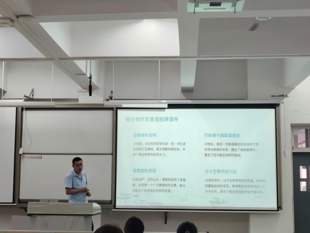 为拓宽同学们的眼界,beat365于4月21日在beat365官方网站经开校区教室1104开展了素质拓展讲座——《微生物的前世今生》,主讲人为张春龙老师。