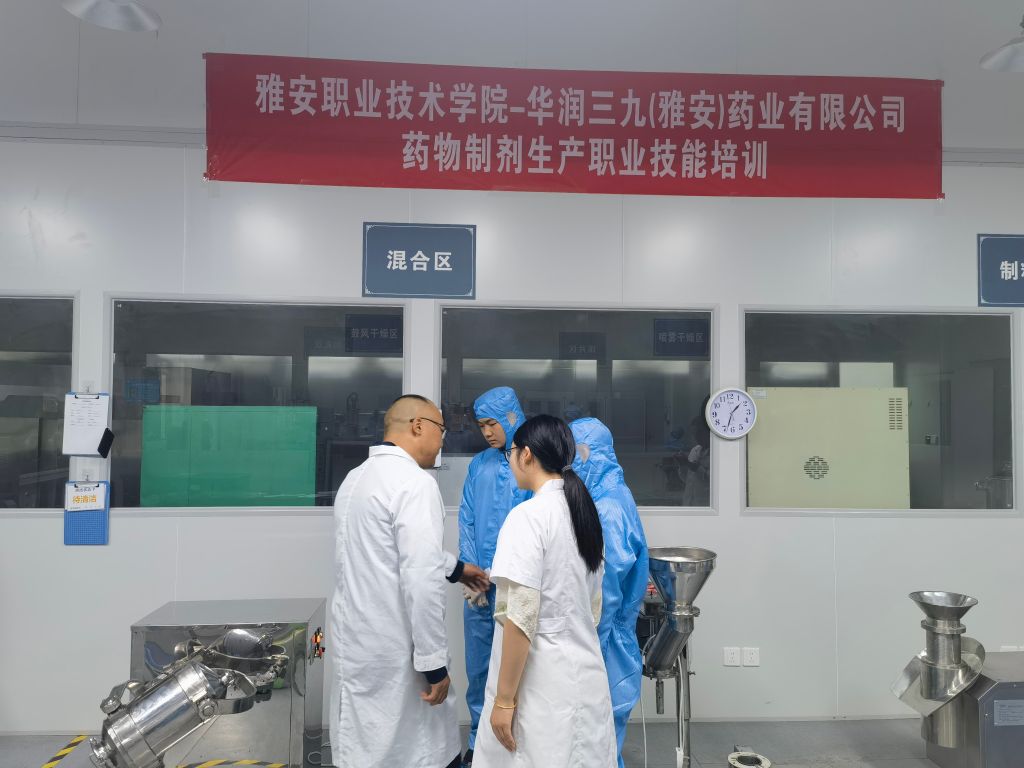 在指导过程中,彭部长不仅详细介绍了例如压片机、混合机等关键设备的技术参数和操作技巧,还结合华润三九的先进生产管理经验,分享了诸多实际生产中可能遇到的问题及其解决方案。他鼓励同学们在学习中要勤于思考,勇于实践,将理论知识与实际操作紧密结合。