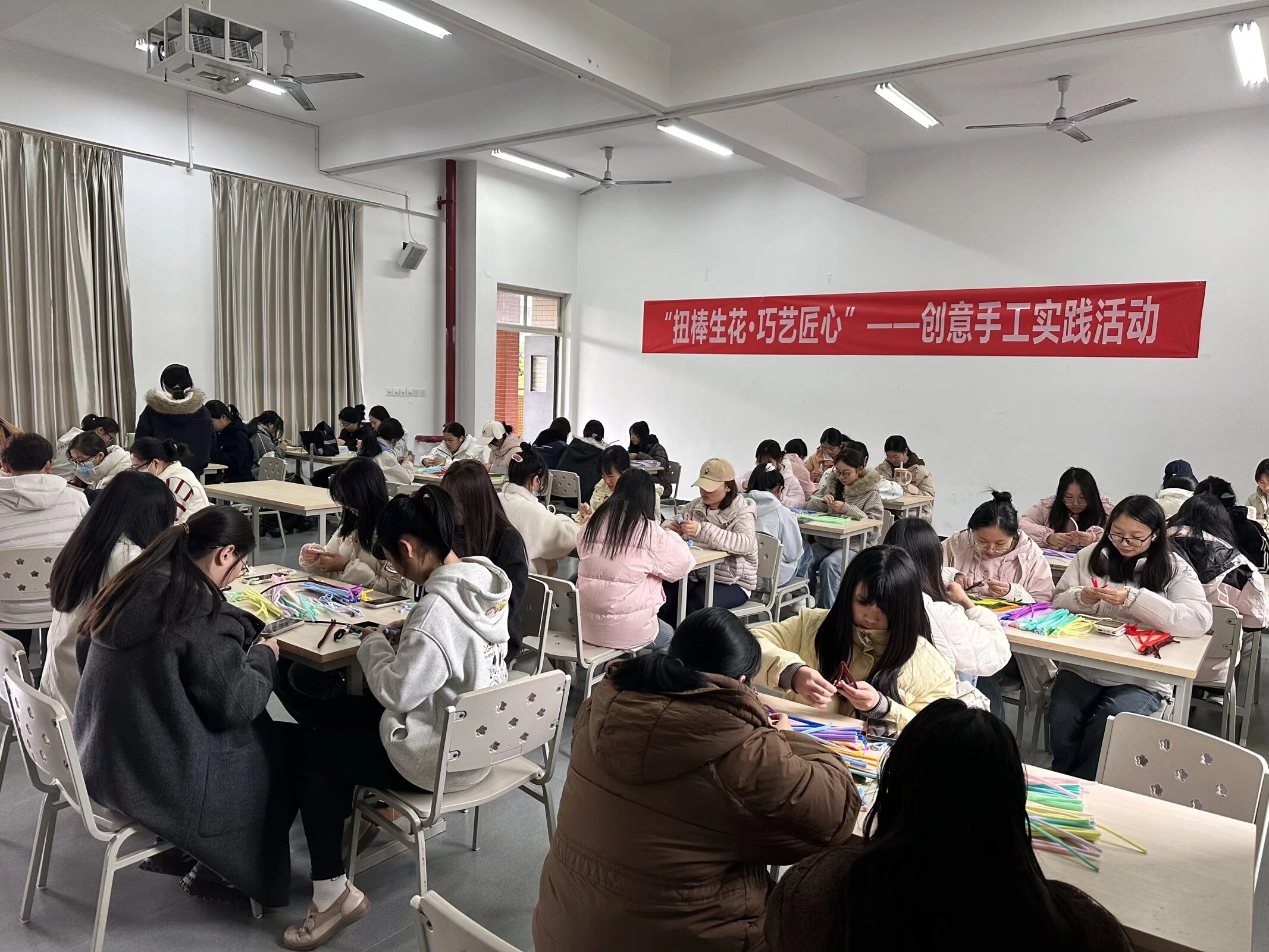 为丰富校园文化生活,提升员工的动手能力、创新思维与团队协作精神,11月18日,beat365于经开区校区2302教室成功举办了“扭棒生花,巧艺匠心”扭扭棒创意手工实践活动。活动吸引了65余名同学踊跃参与,现场气氛热烈,创意纷呈。