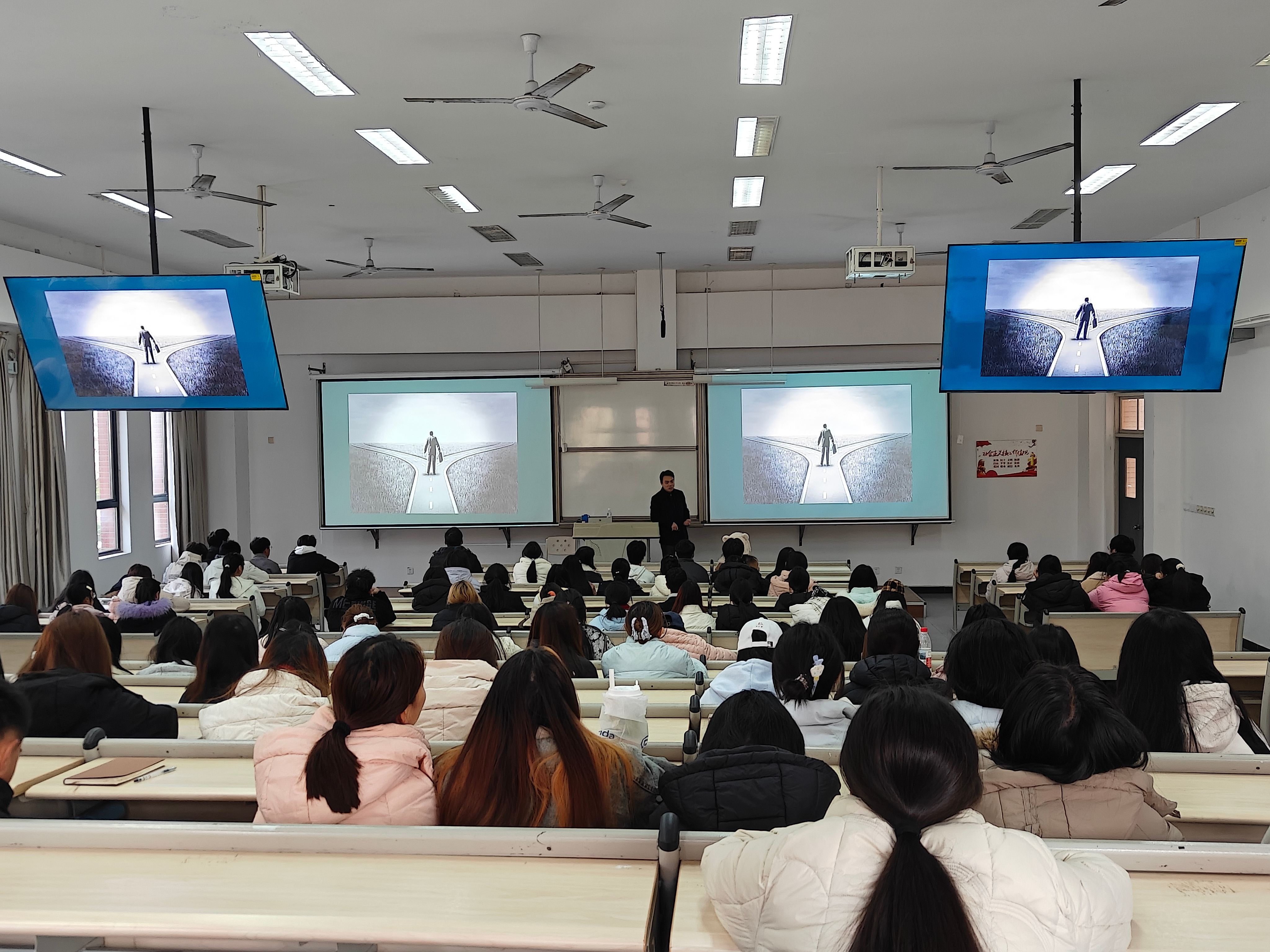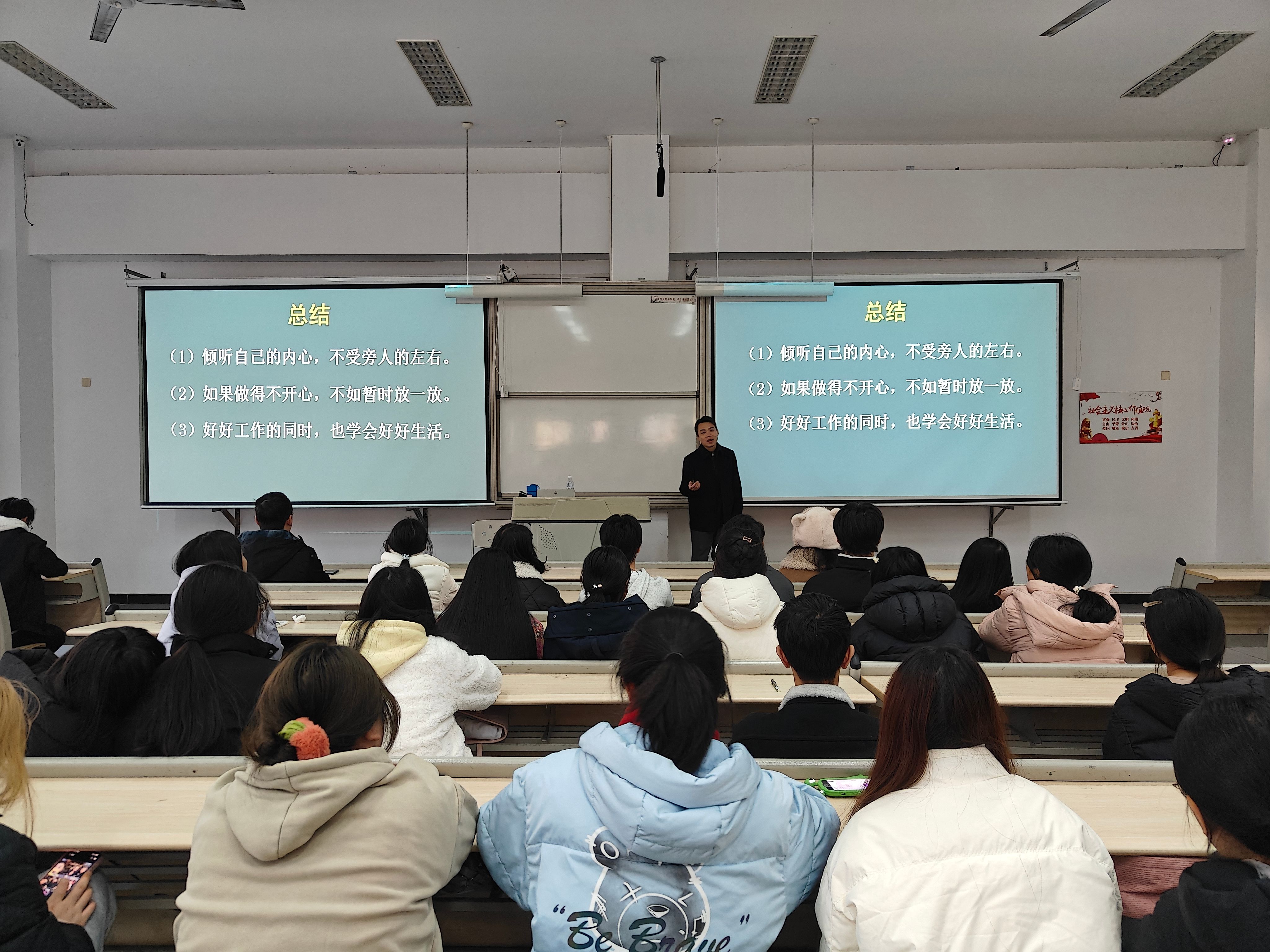 主讲人陈琦教授毕业于四川大学华西口腔医公司,现任雅安市名山区人民医院经理,兼具25年医学临床、教学与管理经验,长期深耕《老员工职业生涯与发展规划》等课程教学,对医员工职业成长规律有着深刻洞察。陈琦教授围绕专业学习、职场认知与人生选择三大板块展开分享。讲座伊始,陈琦教授公布了针对公司口腔、中医康复、药学、医学检验技术等十几个专业的问卷调查结果,指出员工在公司定位、人际关系等方面多持“中间态度”,但对学习状态和工作前景普遍不满,陷入“卷不动、躺不平”的困境,核心症结在于理想与现实的错配。讲座中,结合自身“小镇做题家”的求学经历与职场打拼的迷茫探索,陈琦教授坦诚讲述了医学工作的忙碌现实与早年理想的差距。陈琦教授还分享了通过学术参会、藏区坐诊服务、多元生活体验寻找方向的过程,介绍了在导师指导下提炼的人生追求目标,为员工求职与人生规划提供了宝贵参考。