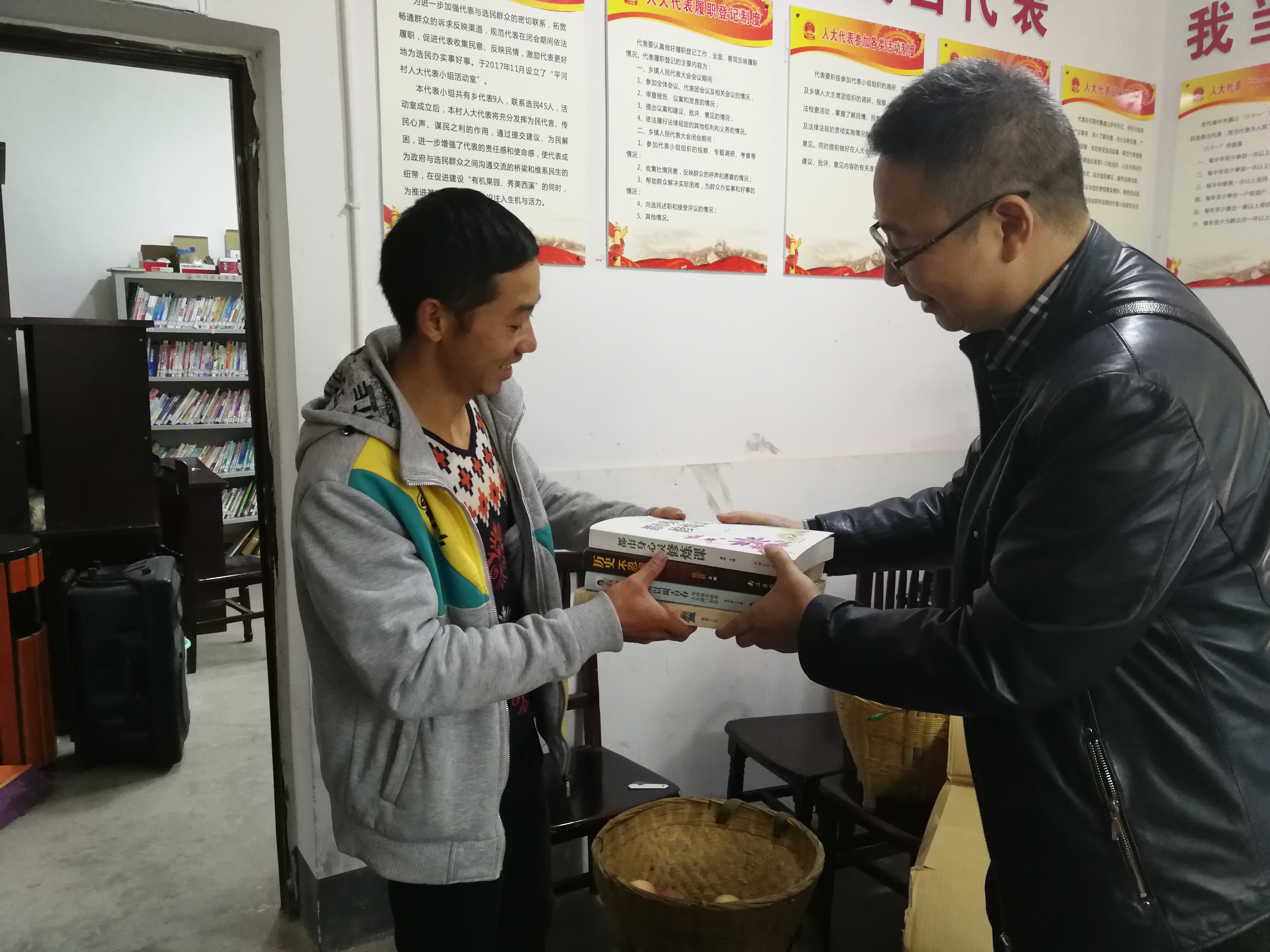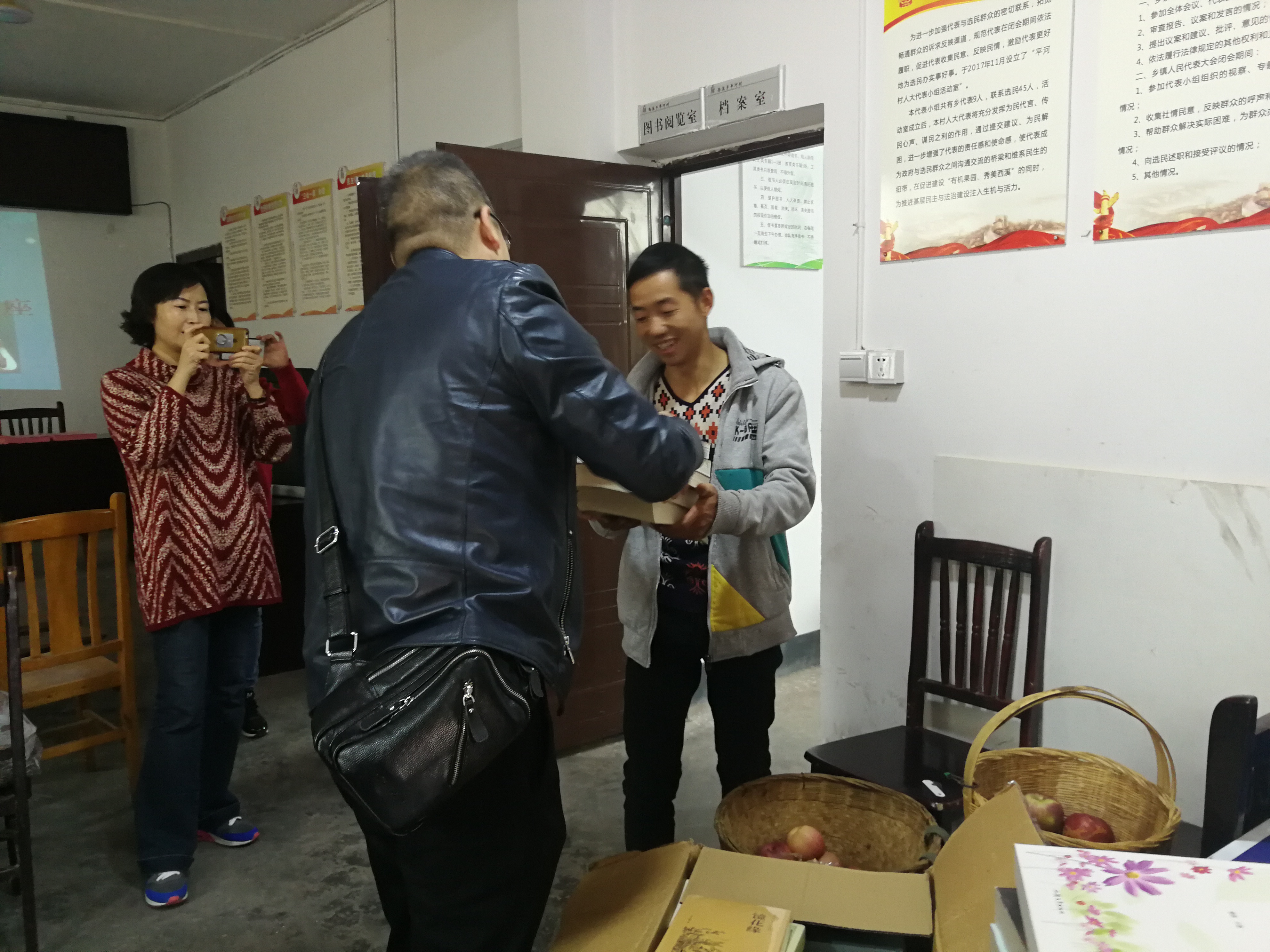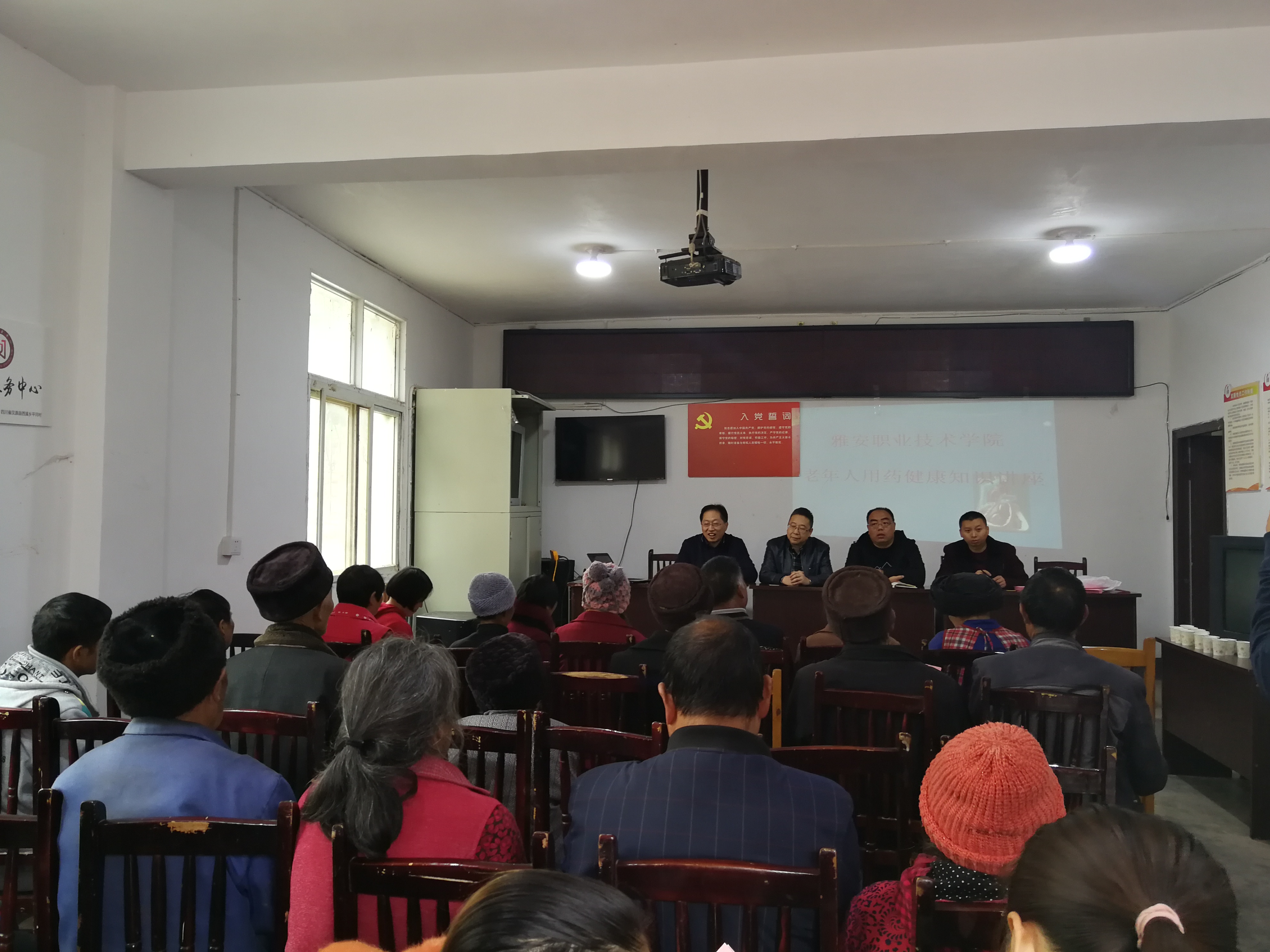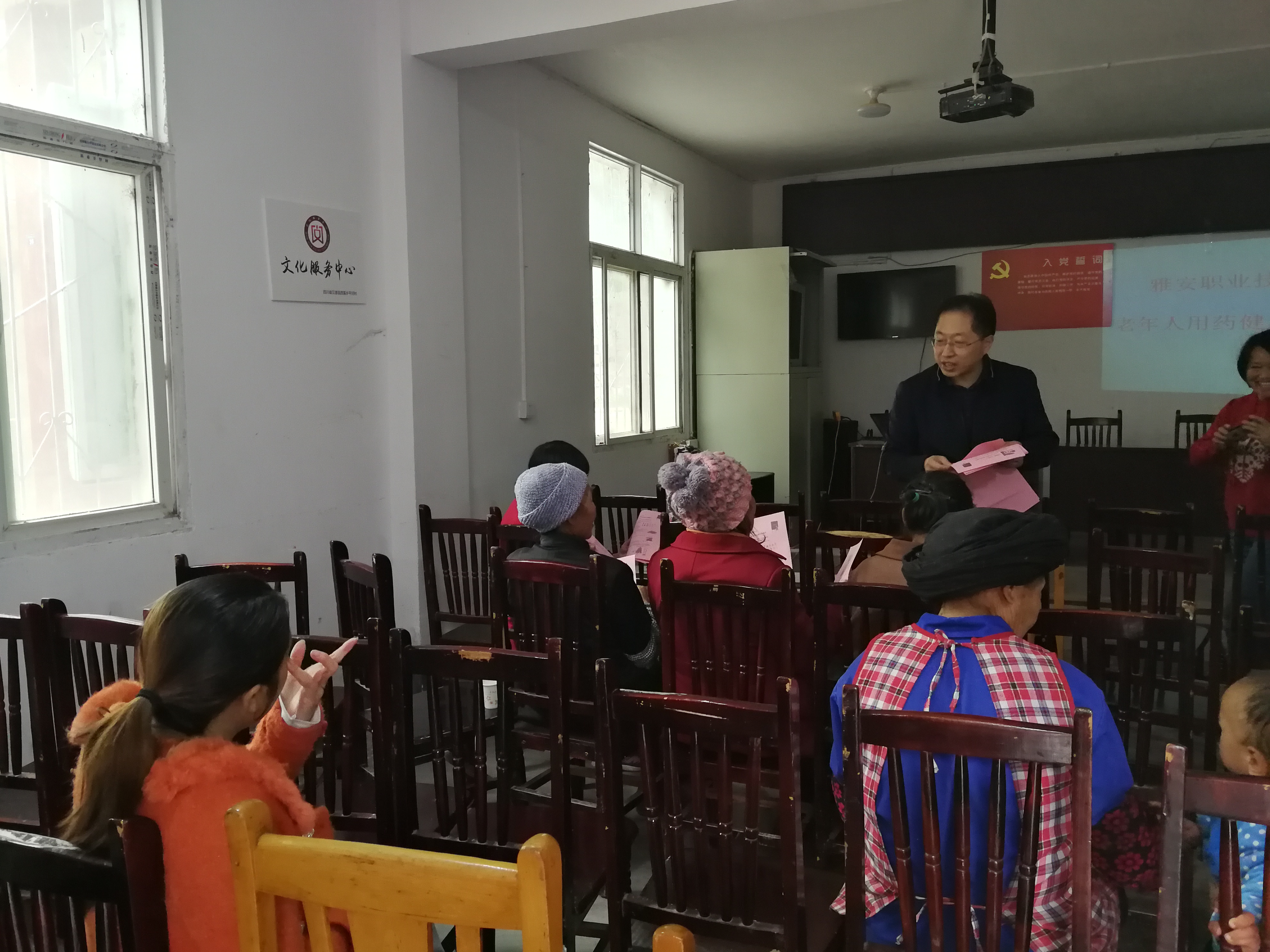 上午11点,老师们到达西溪乡平和村党员活动室。本次活动主要是捐赠图书,送去医学健康知识。活动开始,在宋处长的带领下,老师们将三箱图书捐赠给西溪乡平和村。图书类型多样,包含历史文化、医学饮食等各方面,希望村民们能在图书借阅室获得更丰富和愉悦的时光。同时,杨书记和各位老师对前来参加活动的村民发放《合理膳食,健康生活》《高血压病的预防》的宣传单,对不识字的老年人进行了简单的说明。接着,西溪乡乡长致辞,代表村民感谢公司对西溪乡的帮扶。杨书记和宋处长也分别进行了讲话,希望为乡村的发展做贡献,大家共同实现中国梦。最后,林浩老师做了题为《老年人用药健康知识》的讲座。林老师用通俗易懂的语言,介绍了高血压、高血糖等老人年常见疾病的预防和用药知识。讲座过程中,林老师也根据老年人提出的实际问题进行积极解答。老人们听后均表示收获丰富。