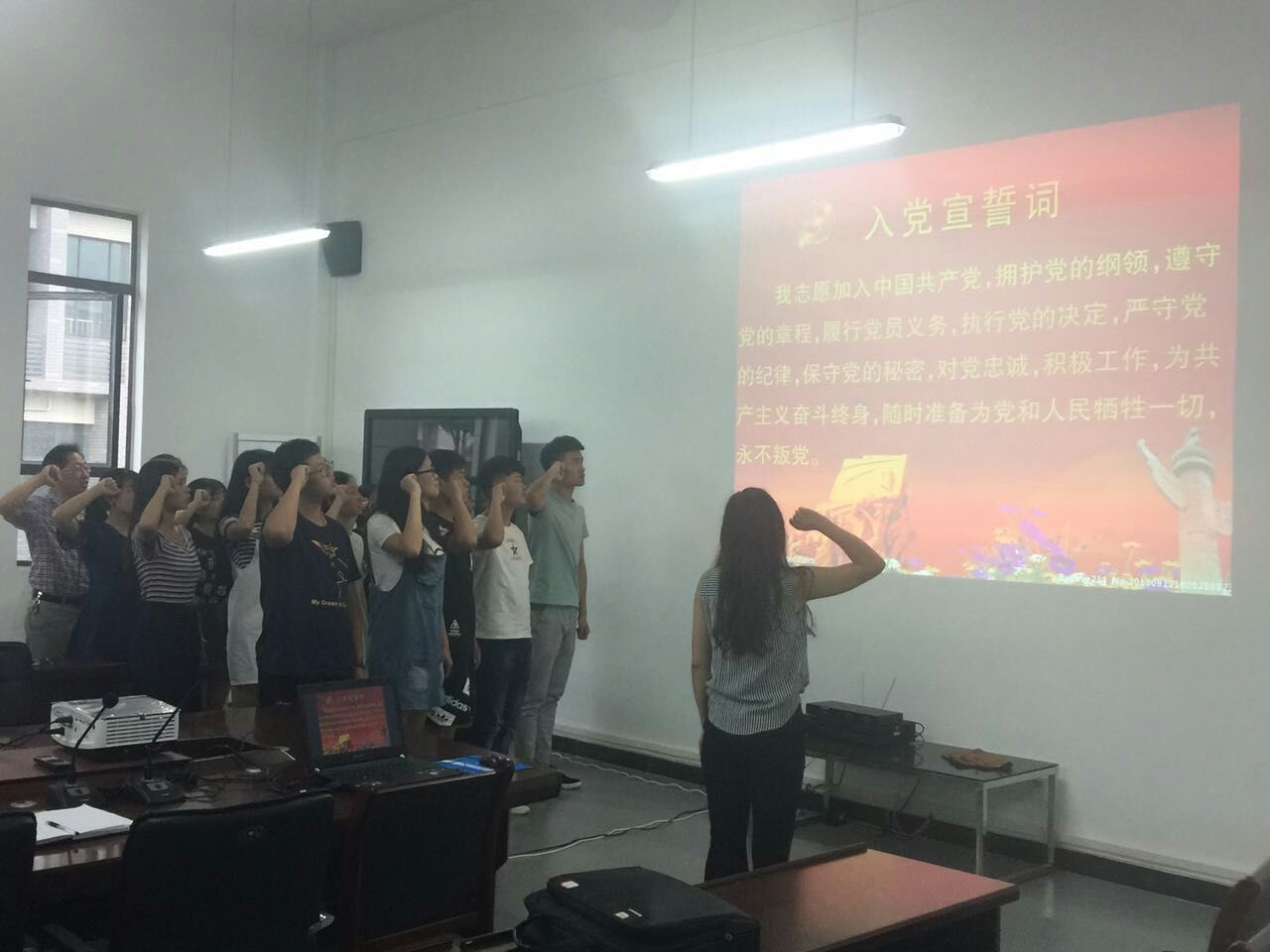 “我志愿加入中国共产党,拥护党的纲领……”此次活动在庄严的宣誓中圆满结束。大家纷纷表示,入党是一阵子的事儿,做党员是一辈子的事儿,在今后的学习、生活中一定严格要求自己,做一名优秀的党员。