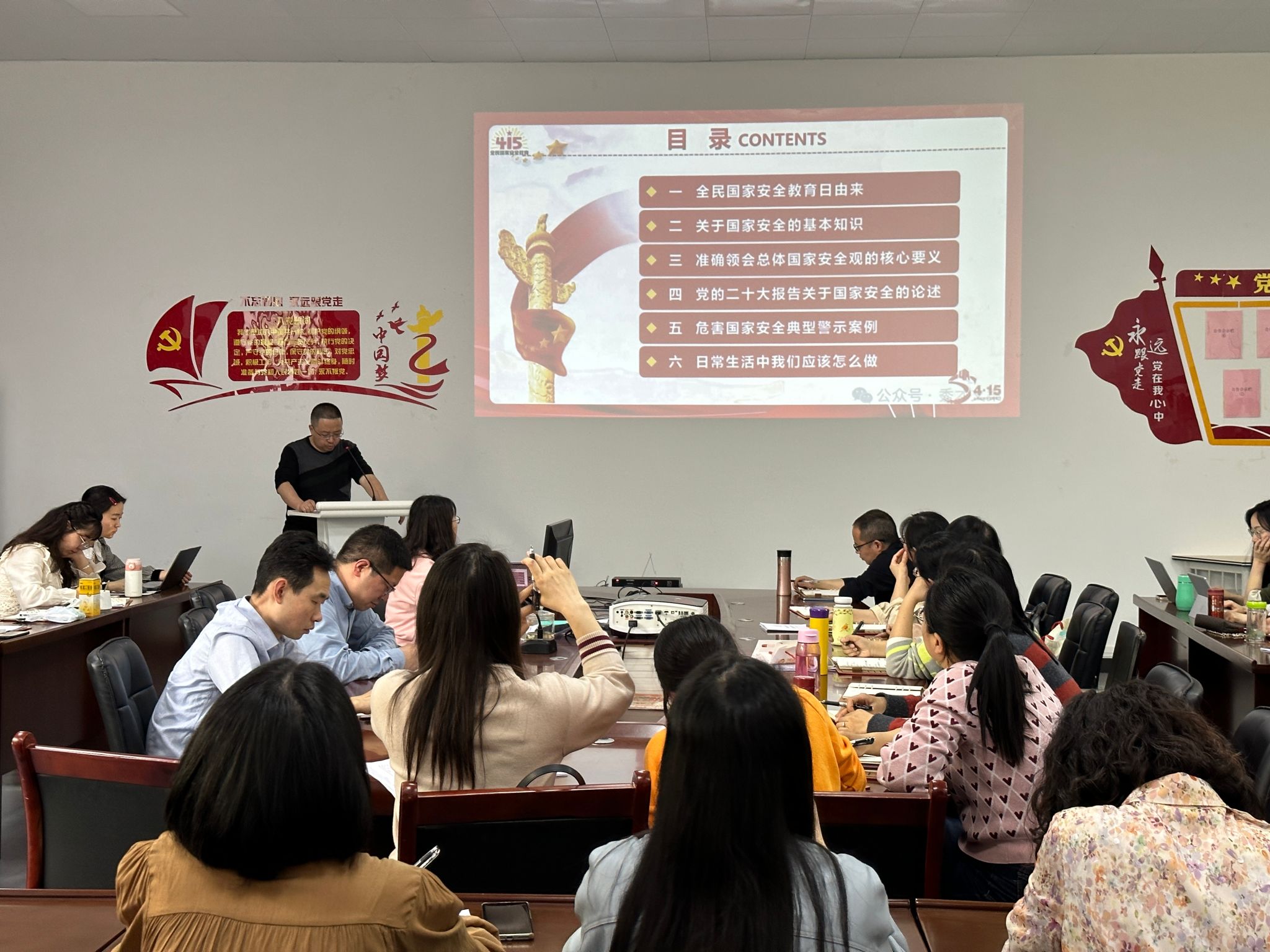 党课由党总支书记王伟才主讲,党课主题是《总体国家安全观·创新引领十周年》;党课分别从全民国家安全教育日由来、关于国家安全的基本知识、准确领会总体国家安全观的核心要义、党的二十大报告关于国家安全的论述、危害国家安全典型警示案例、日常生活中我们应该怎么做六个方面进行讲解。王伟才同志结合其十年来开展国防教育和国家安全公司产品、研究工作的实际进行了系统的讲解,同时对我们日常生活中可能出现的一些涉及国家安全的防范知识向大家作了宣讲。
