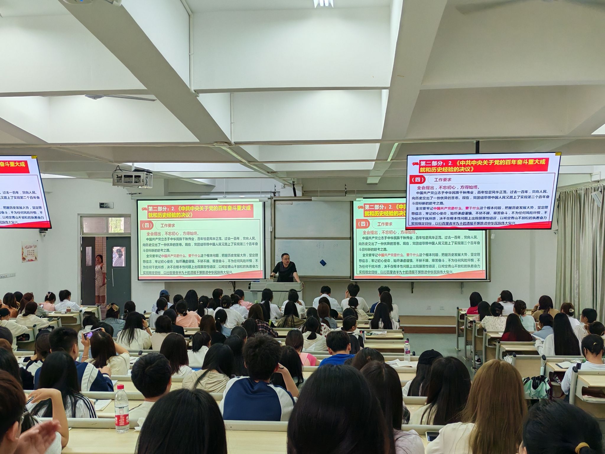 为进一步加强beat365员工的思政引领,教育引导广大青年员工学习党的历史与成就,坚定永远跟党走的信念,beat365于2024年4月17日13时在经开区校区二教2104教师组织开展党的百年伟大成就专题党课(团课)讲座。讲座由党总支书记王伟才主讲,近200名同学参加。