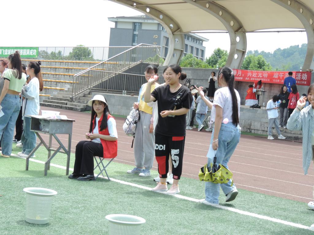 工作人员早早来到活动场地,迎接大家的到来!此次操场的活动共分为:投壶,投五毒,粽语心长,粽情诗词,旱地赛舟。以上活动所集齐的印章还能参加第二天的DIY香囊,大家都特别积极!一起来看看吧~