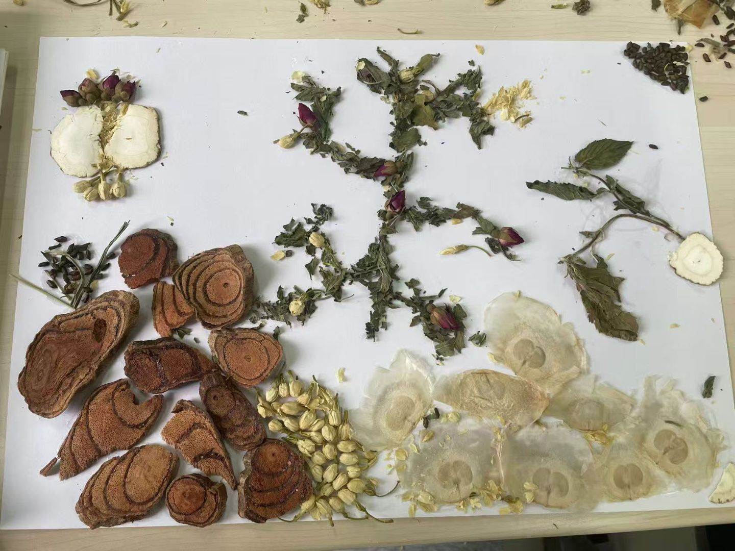 活动伊始,一场“认识中草药”的趣味讲解迅速点燃现场氛围。通过清晰的图片和生动的PPT,薄荷、草决明、白芷等8味常见中药不再只是书本上的名字,而是有形态、有习性、有故事的“自然伙伴”。同学们在聆听中快速建立起对中医药的初步认知,也明确了本次活动的创意核心——用艺术拼贴传递本草情怀。