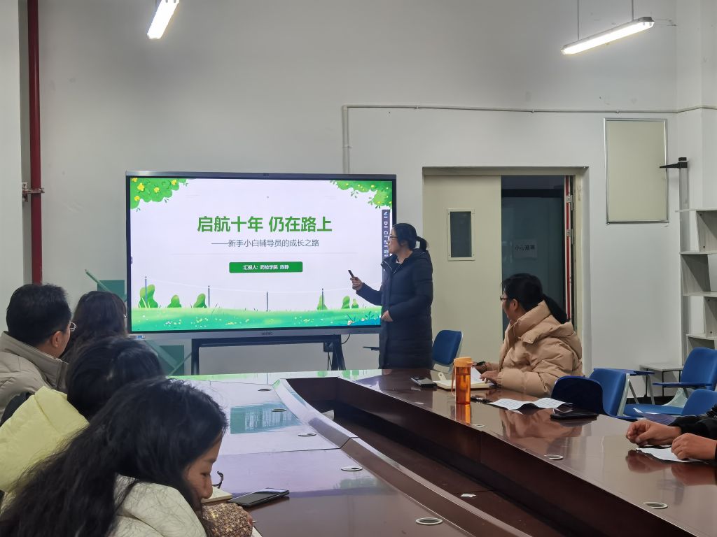 鲜敏、陈静两位辅导员做了主题分享。鲜老师以"初心如磐·育人同行“为主题,从职业初心、实践历程、育人智慧、未来展望等维度分享了她的十三年辅导员成长之路。她通过讲述员工们的成长故事,生动地展现了自身在工作中不断积累经验、逐步成熟的过程。同时,鲜老师还结合自身参加过的各类培训与学习经历,为大家介绍了诸多工作学习的新方法,为在场的辅导员老师们提供了新的思路与启发。陈老师则以“启航十年·仍在路上”为主题,将十一年工作历程比作青铜至黄金的段位跃升,针对各阶段面临的挑战和问题,分享了她的解决办法。最后通过三个故事和大家共勉:教育需要等待的温度、共情的深度与细节的精度。分享结束后,与会辅导员老师围绕员工心理疏导、生涯规划指导等议题展开自由讨论。
