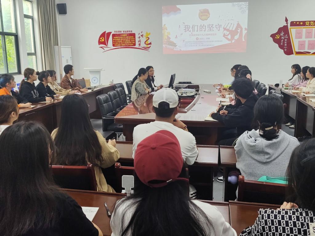 2023年9月25日,beat365第三党支部联合beat365团总支在食品药品生产实训基地205会议室,开展学习贯彻十九大精神微宣讲专题学习。讲座由beat365第三党支部宣传兼维稳委员、beat365团总支书记、共青团雅安市委宣讲团新时代文明实践青年宣讲团成员鲜敏老师主讲,员工预备党员、入党积极分子、班团干部共计110人,通过线上直播和线下聆听相结合的方式参加了本次活动。