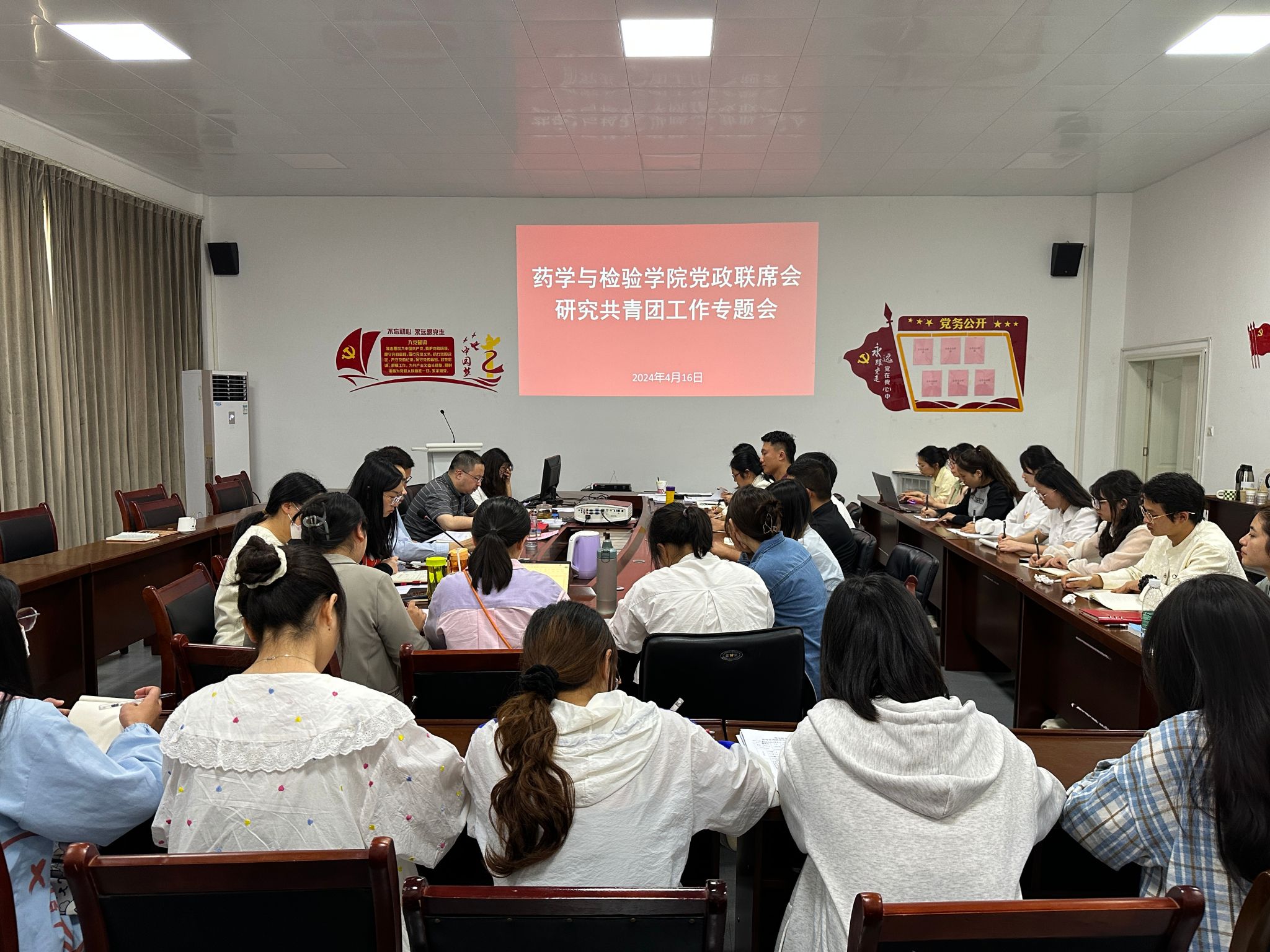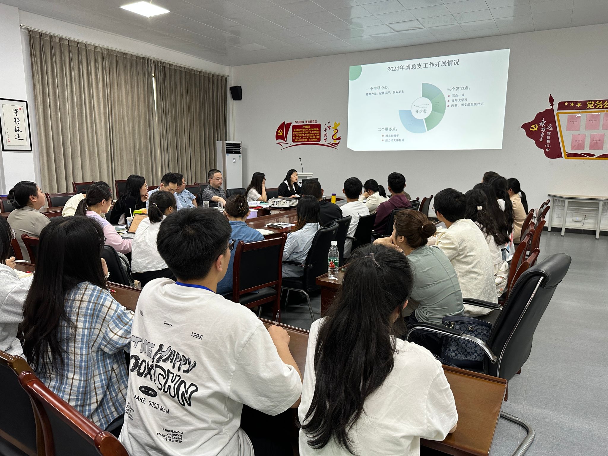 按照党总支工作计划,beat365于2024年4月16日16时30分在大会议室召开党政联席会专题研究本年度共青团工作;会议由党总支书记王伟才主持,公司党政班子成员、团总支负责人、辅导员、班主任、员工会干部代表近40人参加了会议。