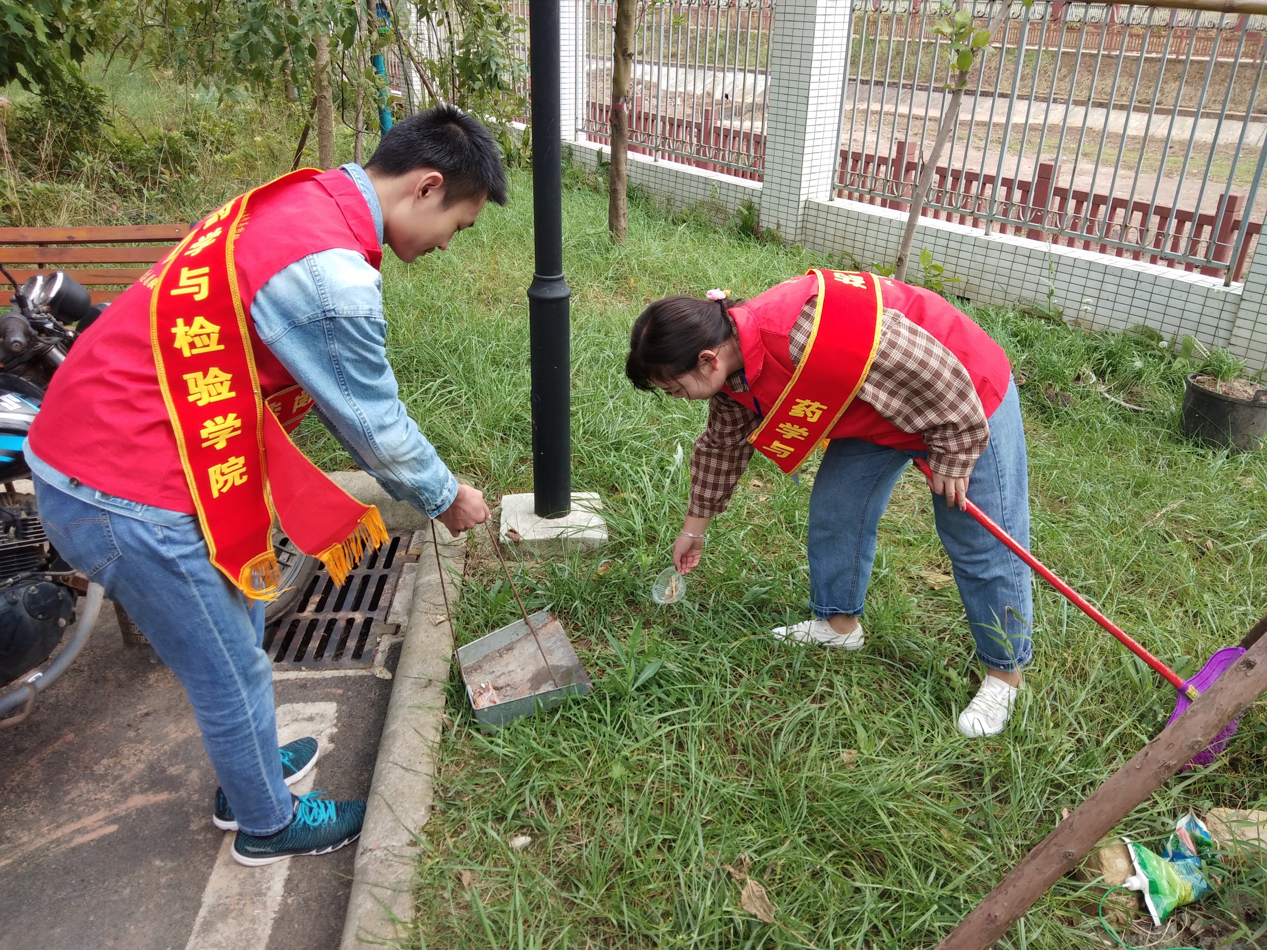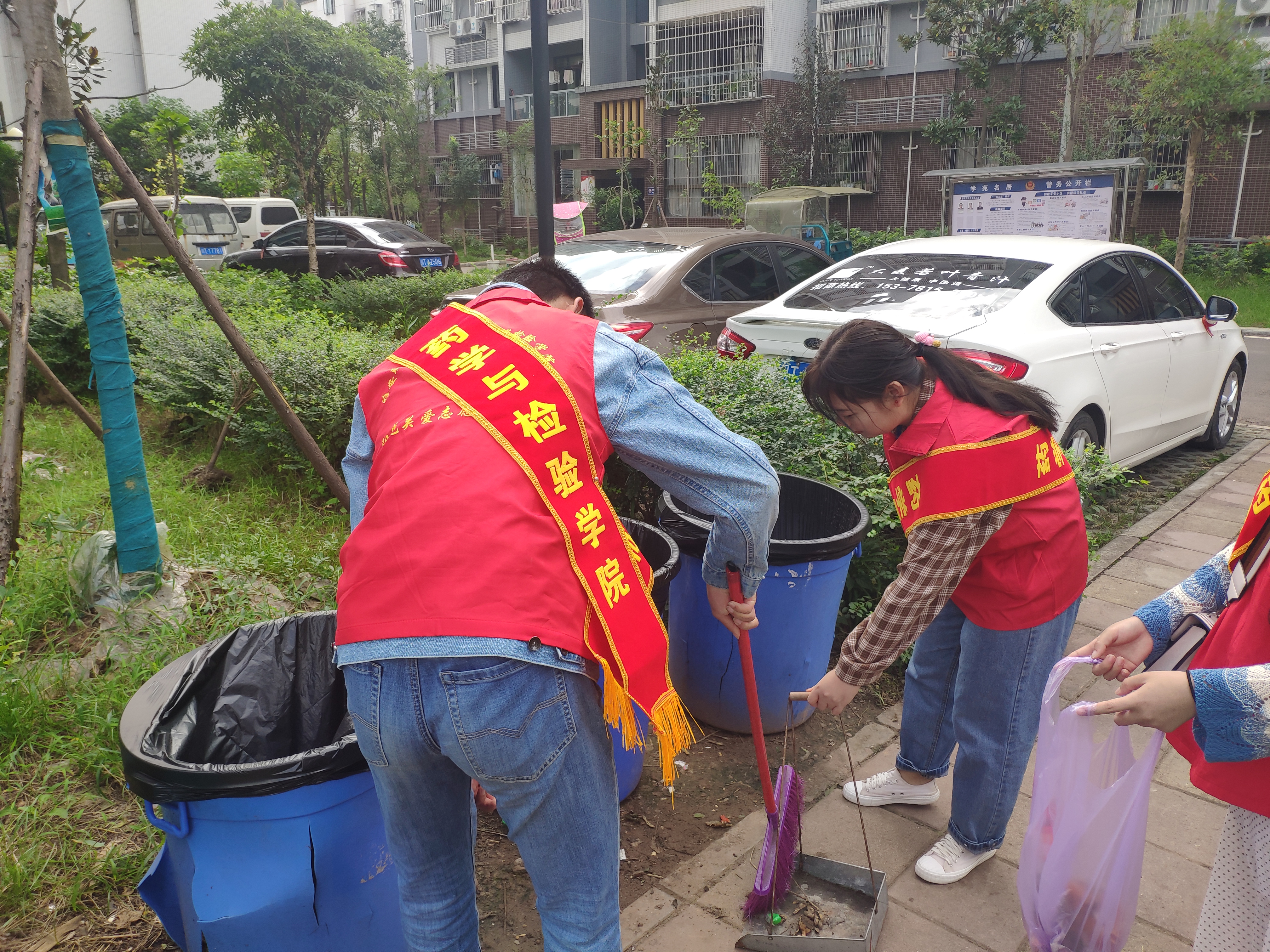 早上九点,青志协4名负责人分组共带领13名志愿者来到了学苑名居小区。根据之前的区域划分,各队负责人带领自己的小队在对应区域进行了清洁活动。大家沿着路的两边,清理道路、草坪、墙根、旮旯角等地方的垃圾,扶起车棚里一辆辆摔倒的自行车并将其整齐摆放。活动持续了两个小时,小区环境又变得干净整洁了。今天天气格外晴朗,志愿者们早已汗流浃背,但是看着整齐的车棚,干净的路面和草坪,志愿者们感到特别的骄傲。