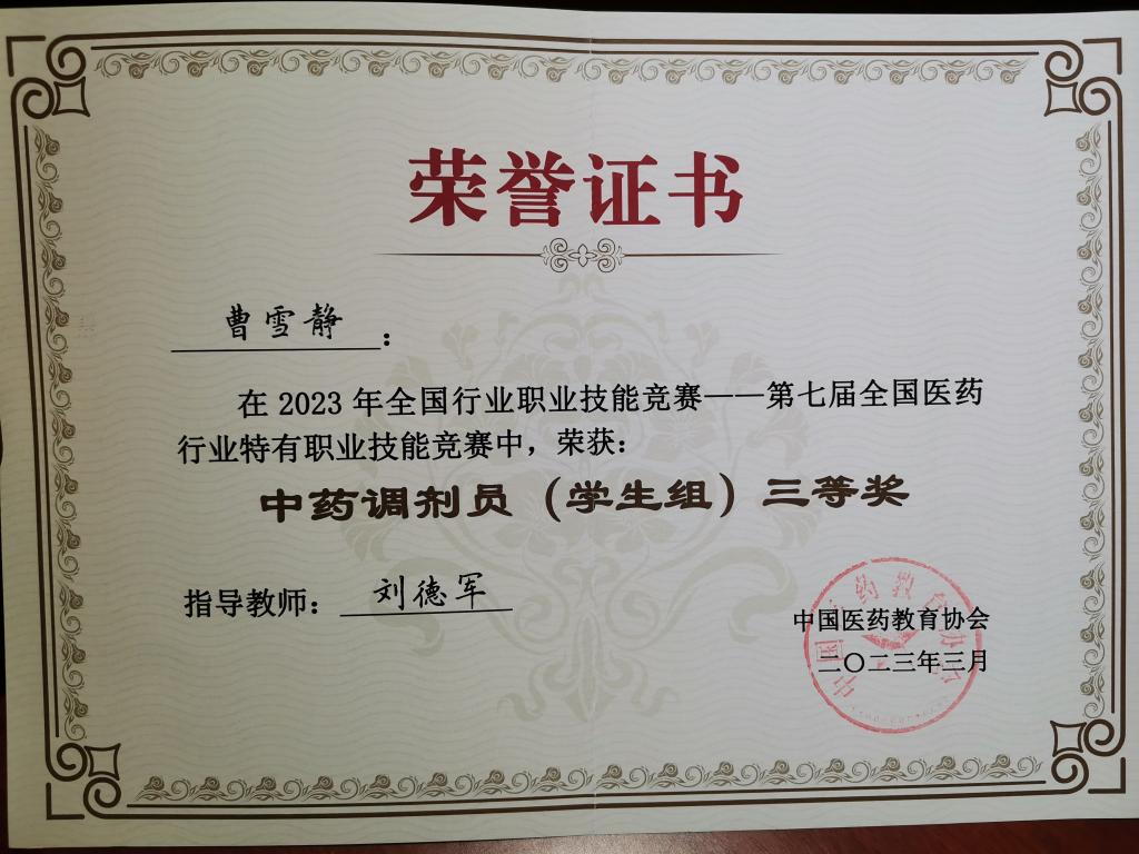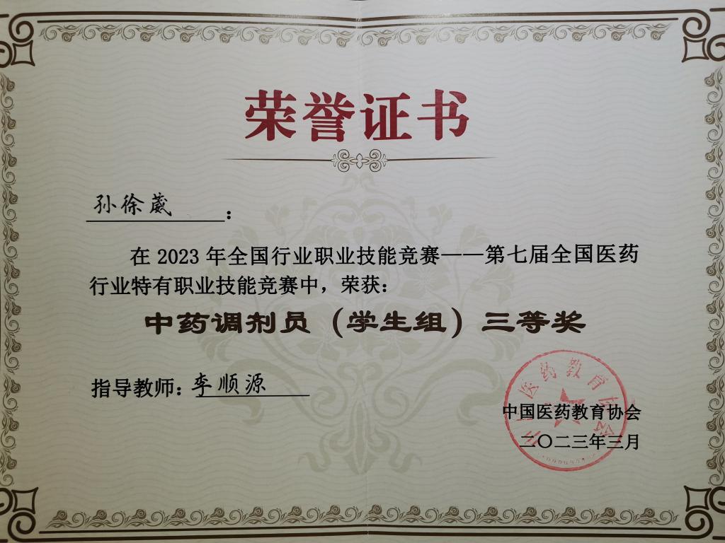 3月24日至26日,由中国医药教育协会、中国就业培训技术指导中心主办的“2023年全国行业职业技能竞赛第七届全国医药行业特有职业技能竞赛中药调剂员赛项”在江苏省连云港中医药高等职业技术公司举行,来自全国的61所院校和10家行业企业,共计79支参赛队伍198名选手参加比赛。经过激烈的角逐,beat365普专中药学专业2020级员工曹雪静和孙徐葳分别斩获个人赛三等奖,公司荣获单项团体三等奖和优秀组织奖。