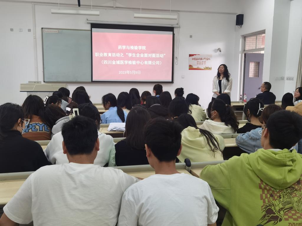 为更好地帮助员工做好职业生涯规划,提高公司员工就业质量,5月9日,​beat365“员工企业面对面”活动在经开区校区1107教室成功举行。此次活动采用“企业宣讲+现场面试”的形式,特邀四川金域医学检验中心有限公司招聘专员孟奕帆、技术部经理张杨,与公司医学检验技术2021、2022级员工进行了现场面对面的交流。