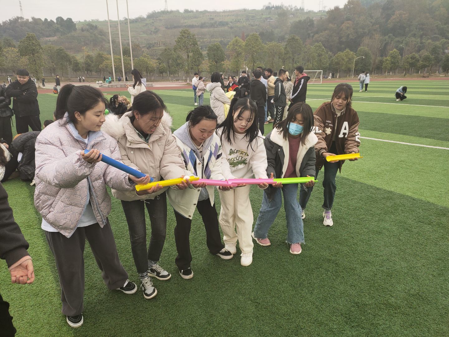本次运动会共设有“齐心协力过草地”、“翻越夹金山”、“强渡大渡河”、“四渡赤水”、“巧夺金沙江”以及“胜利会师”共计六个具有红色长征韵味的活动,共计37支队伍参赛。随着主持人宣布运动项目的比赛规则和裁判员的一声哨响,趣味运动会正式开始!赛场上,参赛队员们个个精神抖擞,“跳、跑、闪、搂、抱、伸、弹......”十八般武艺尽显,运动员们抱着“争取第一,重在参与”的精神,默契配合,享受着每一项趣味比赛带来的身心放松和愉悦。观战的同学们也热情似火,加油声、呐喊声、欢笑声此起彼伏。经过一下午激烈角逐,比赛项目一、二、三等奖最终各自花落有主。赛后,同学们有序离开并留下了欢声一片,自此趣味运动会落下了圆满的帷幕。
