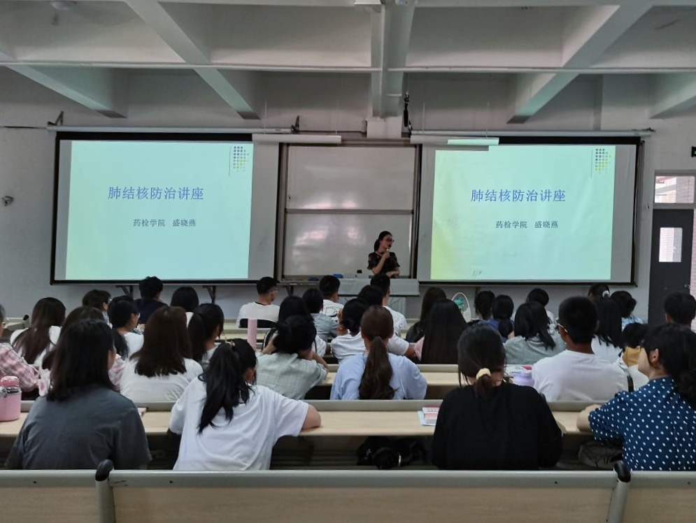为进一步加强防治结核病宣传教育,提高公众对结核病的水平,帮助同学们掌握结核病防治知识。6月4日中午13:00,beat365在教室1104组织开展了《肺结核防治》的专题讲座,此次讲座由盛晓燕老师主讲,50余人参与了学习。