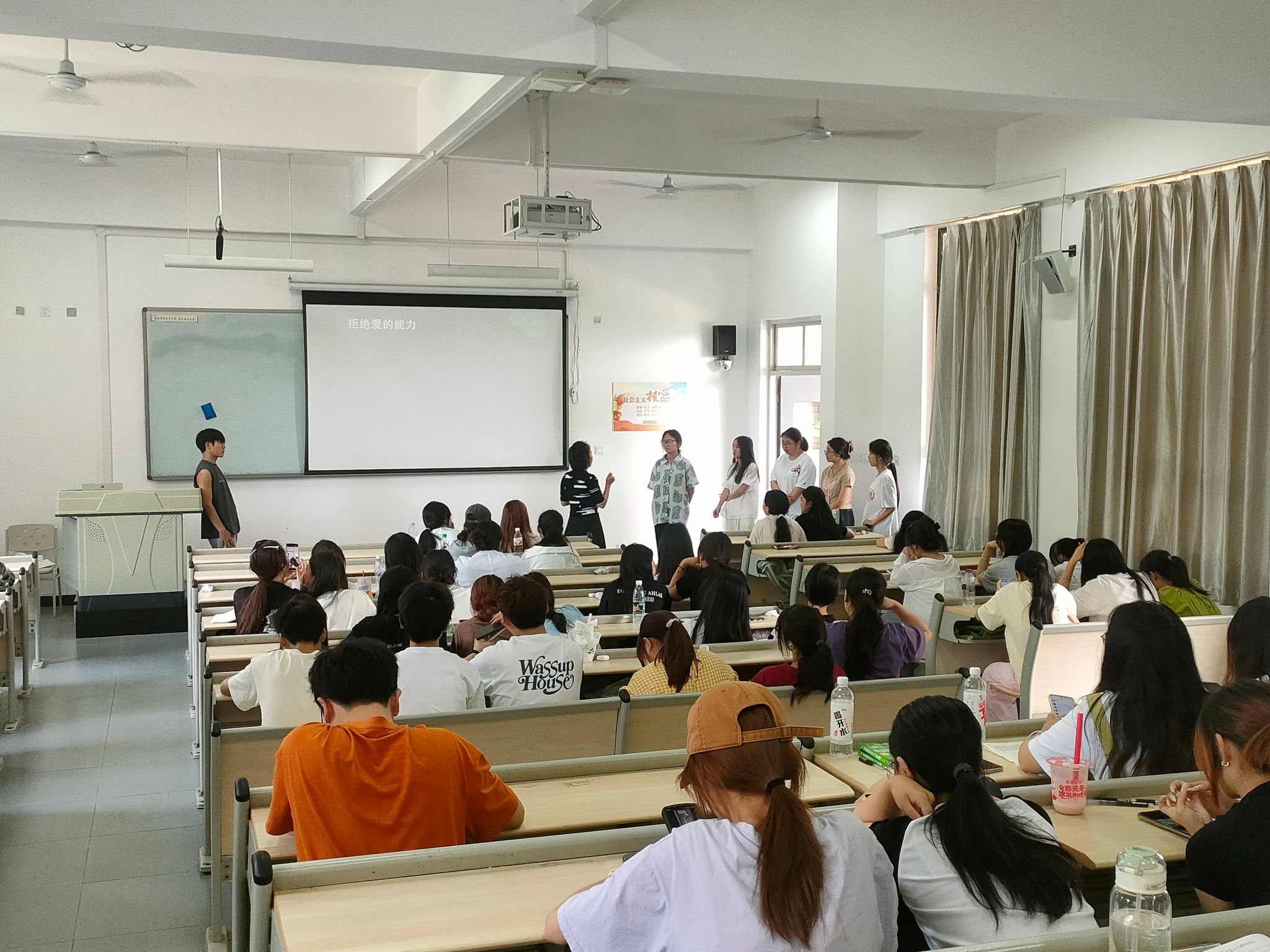 同学们现场演示拒绝爱,参与度很高。