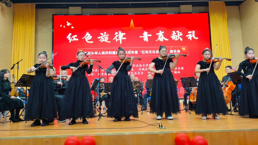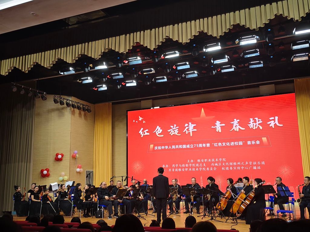 为庆祝中华人民共和国成立75周年,营造良好的校园文化环境,落实立德树人根本任务,提高广大师生艺术修养和文化素质,推动中华优秀传统文化进校园,10月26日,由公司和雅州之声管弦乐团共同举办的“红色旋律,青春献礼”庆祝新中国成立75周年音乐会在公司经开校区聚雅厅隆重举行。公司师生共计400余人共同欣赏了这场音乐盛宴。