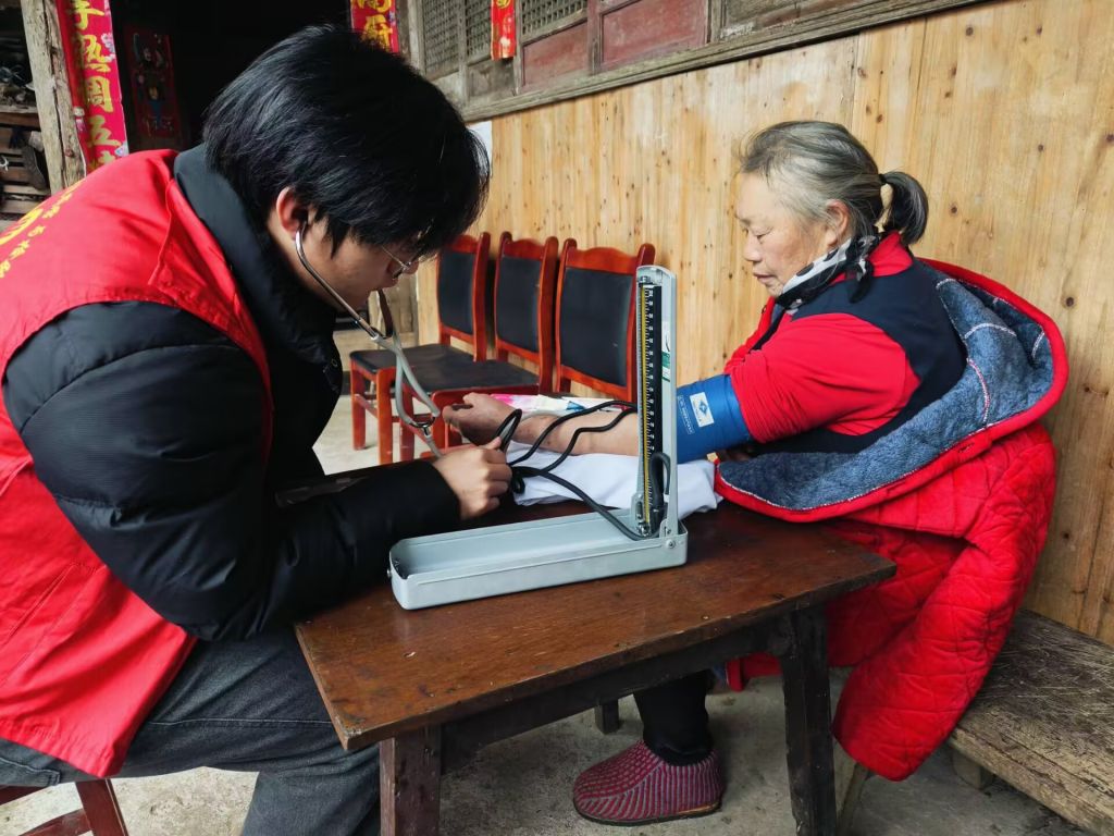 为大力弘扬中华民族尊老、敬老、爱老、助老的传统美德,同时提高老年人对高血压的认识,培养健康生活方式,营造温馨有爱的氛围,beat365阳光关爱志愿服务队和医路同兴-“小药箱”志愿服务队于12月22日走进雅安市名山区永兴街道槐树村开展“关爱健康,血压护航”活动。