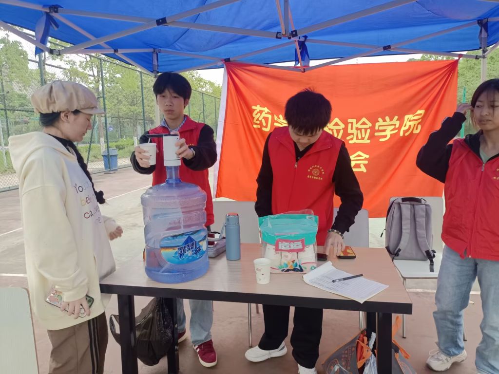 志愿者分为了六组,由一位组长带领组员进行志愿活动的开展。前期筹备阶段,志愿者们根据运动会需求,准备饮用水、纸杯、急救药品、桌椅等物资筹备以及场地的布置;赛中执行阶段,志愿者们及时为运动员及观众提供饮用水等贴心服务,回收用过的纸杯、包装盒等垃圾,营造良好的赛事环境,并时刻关注饮用水、纸杯消耗情况,及时进行补充,确保物资供应不间断,同时一直观察着是否有异常情况,以便有紧急情况发生,第一时间进行确定并紧急处理。赛后收尾阶段,志愿者们完成物资整理归还、场地清理恢复。