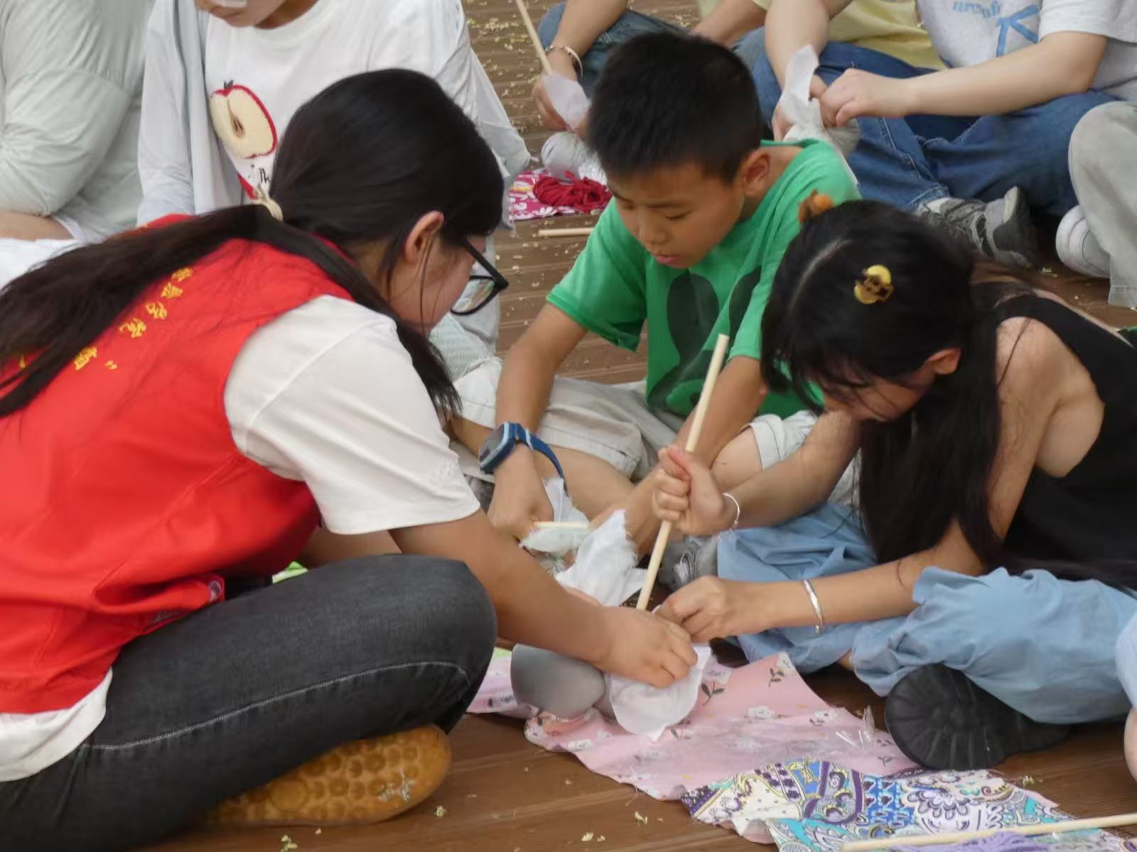 7月9日,beat365阳光关爱志愿服务队携手医路同兴“小药箱”团队在雅安市名山区蒙顶山镇举办了一场别开生面的非遗手作体验活动。十余名小朋友在志愿者指导下,亲手制作传统艾草养生锤,在指尖技艺中感受中医药文化的独特魅力。